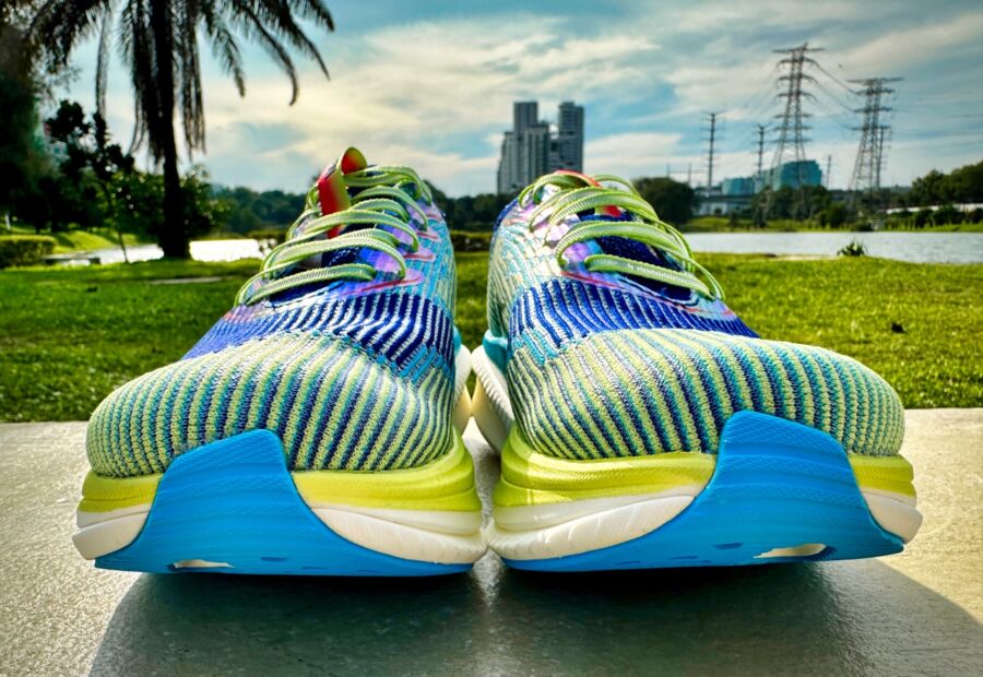 The winged plate in the Cielo X1 is more flexible than the plates in other racers. For example, the Saucony Endorphin Elite– it also has a high toe-spring but its forefoot rocker feels a lot more aggressive due to its stiffer plate. This translates to punchier toe-offs and a faster ride.